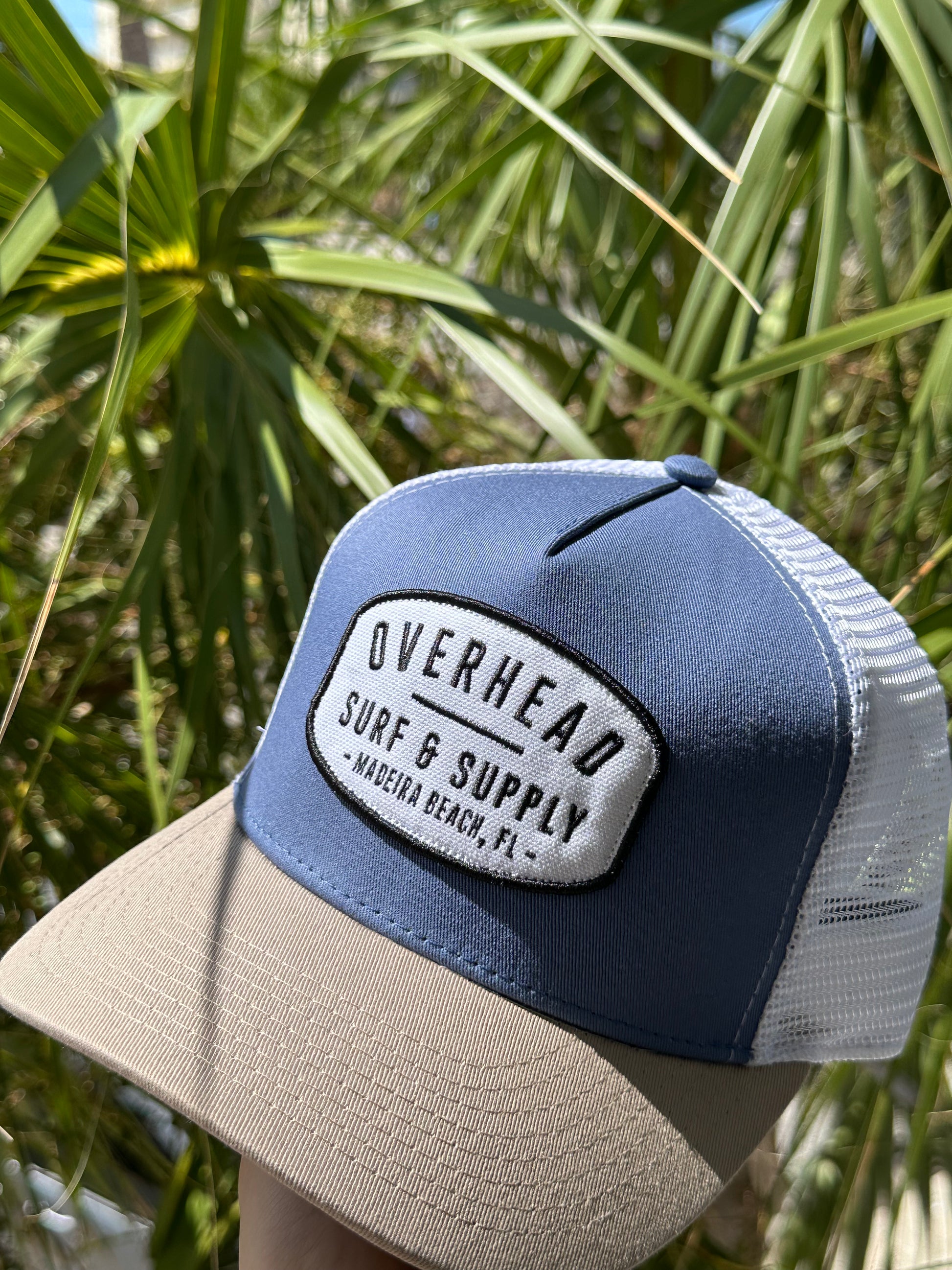 - Our Surf & Supply Design on a Blue/SandTrucker Hat